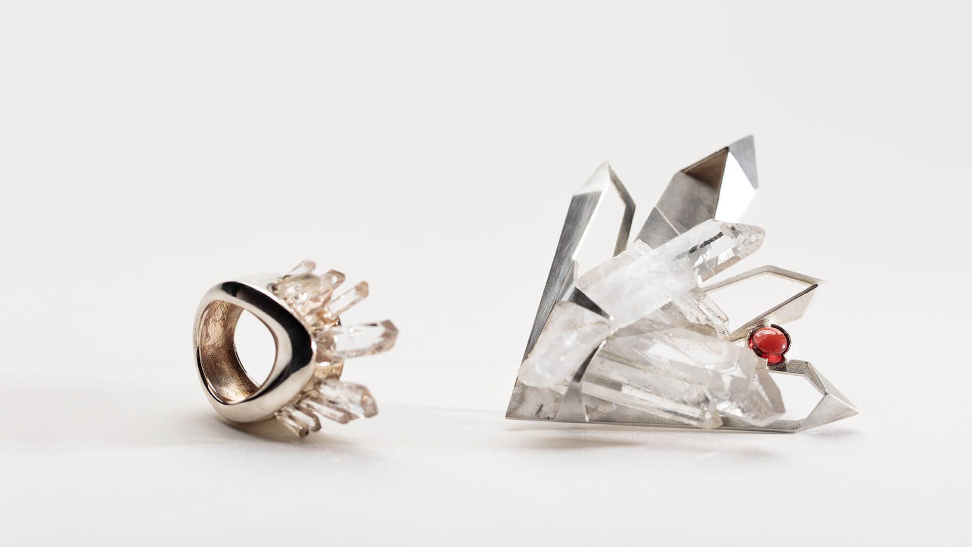 Ces bijoux contemporains sont des pièces uniques que j’ai créés et fabriquées spécialement pour des expositions. Pour un thème donné, je pars d’une réflexion et vient faire des recherches et manipulations de matières sur ce thème. Je viens ensuite explorer la façon dont en se transformant en bijoux, ces éléments investissent le corps et deviennent un support d’expression à part entière, une interface entre soi et les autres.