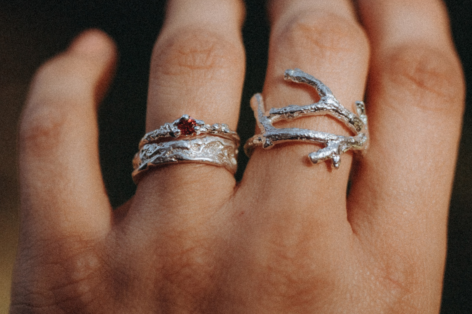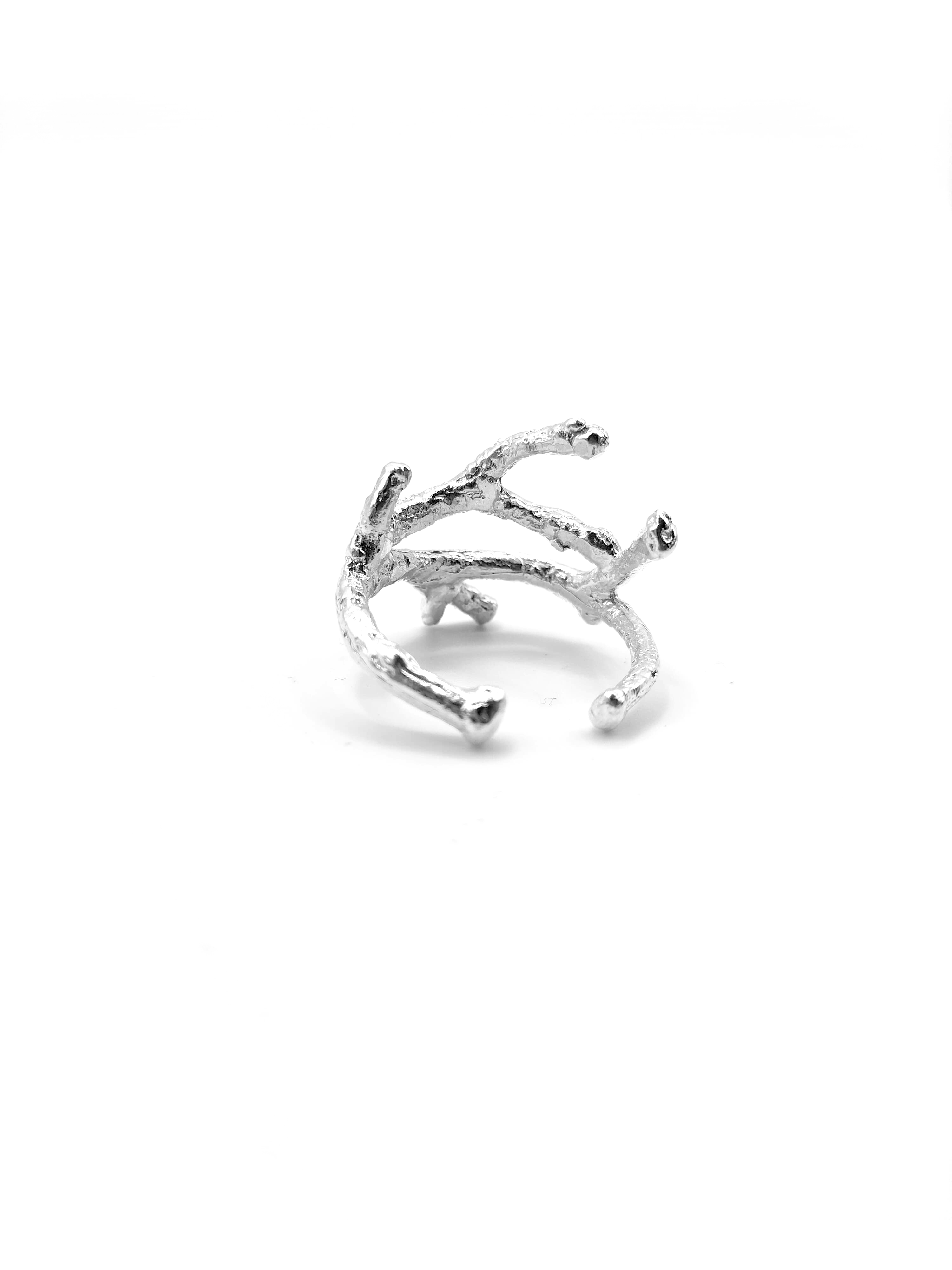 Bague en argent réalisée à partir d’une brindille de noisetier de Chartreuse puis fondue en argent recyclé.